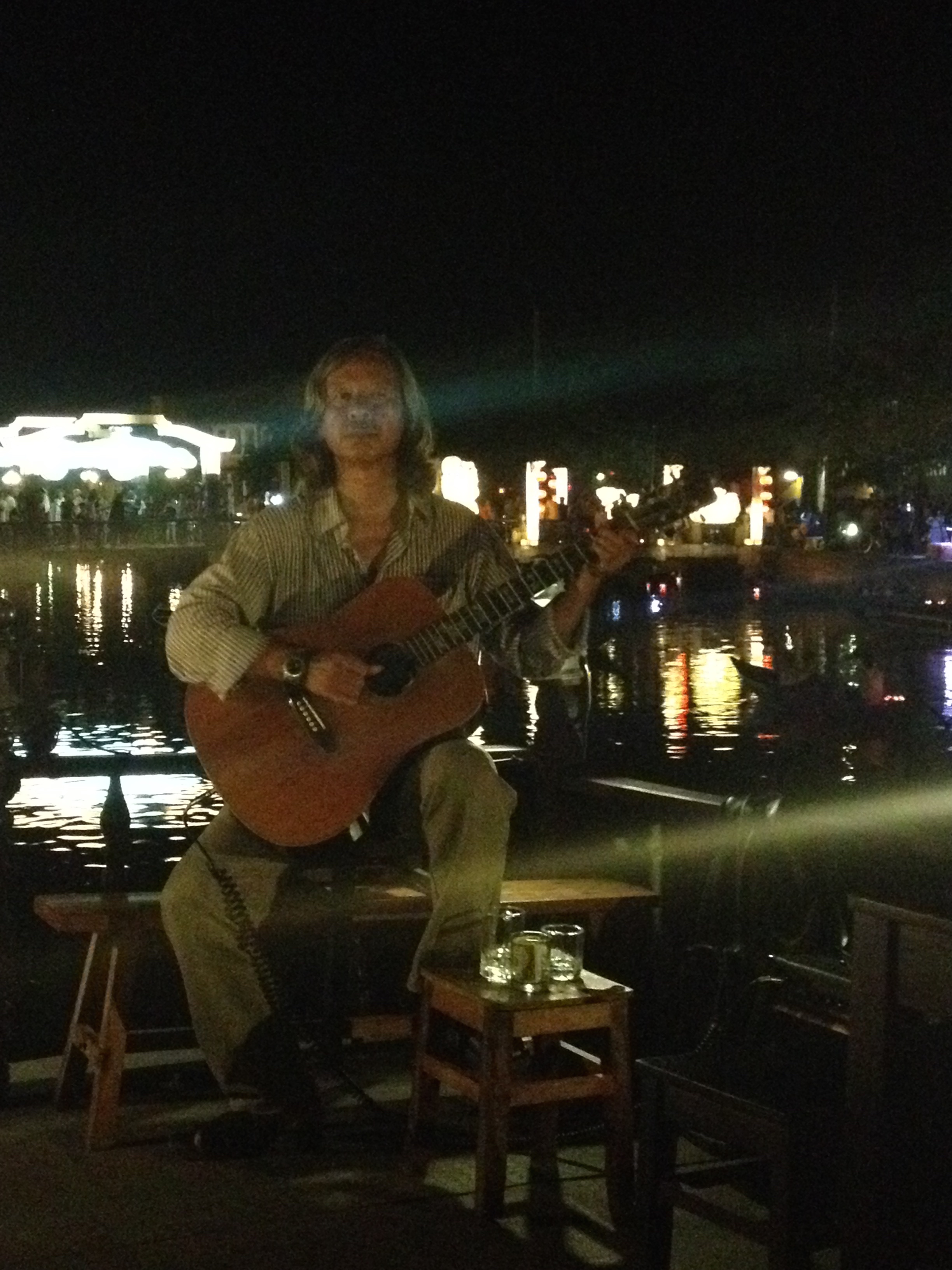 After slowly meandering through the colorful lights and cheerful locals, the distant strain of music led my wandering feet to a boat. I sat on the top deck, sipping a cool glass of Baileys, while listening to some of the best guitar playing I’ve ever heard.