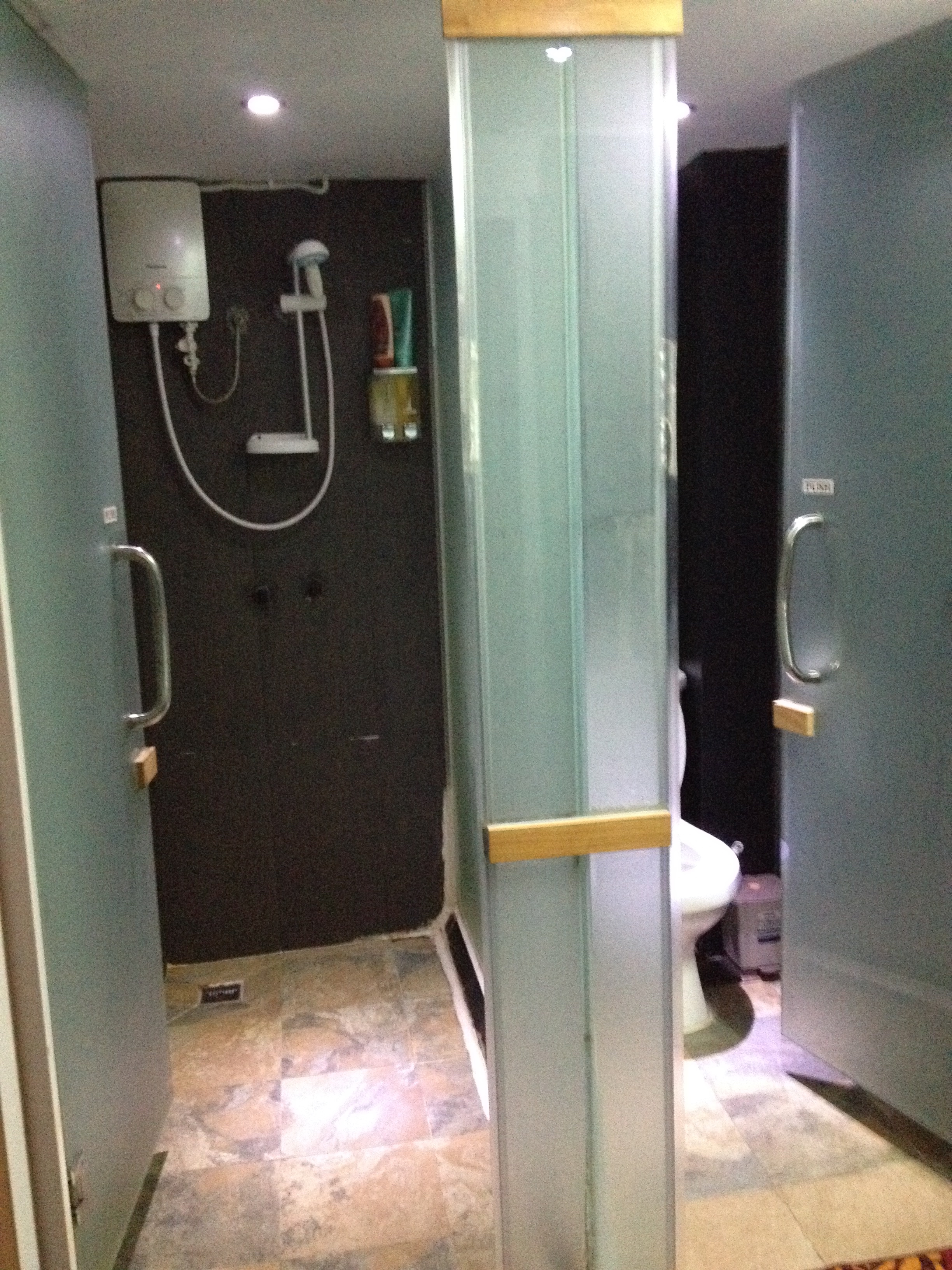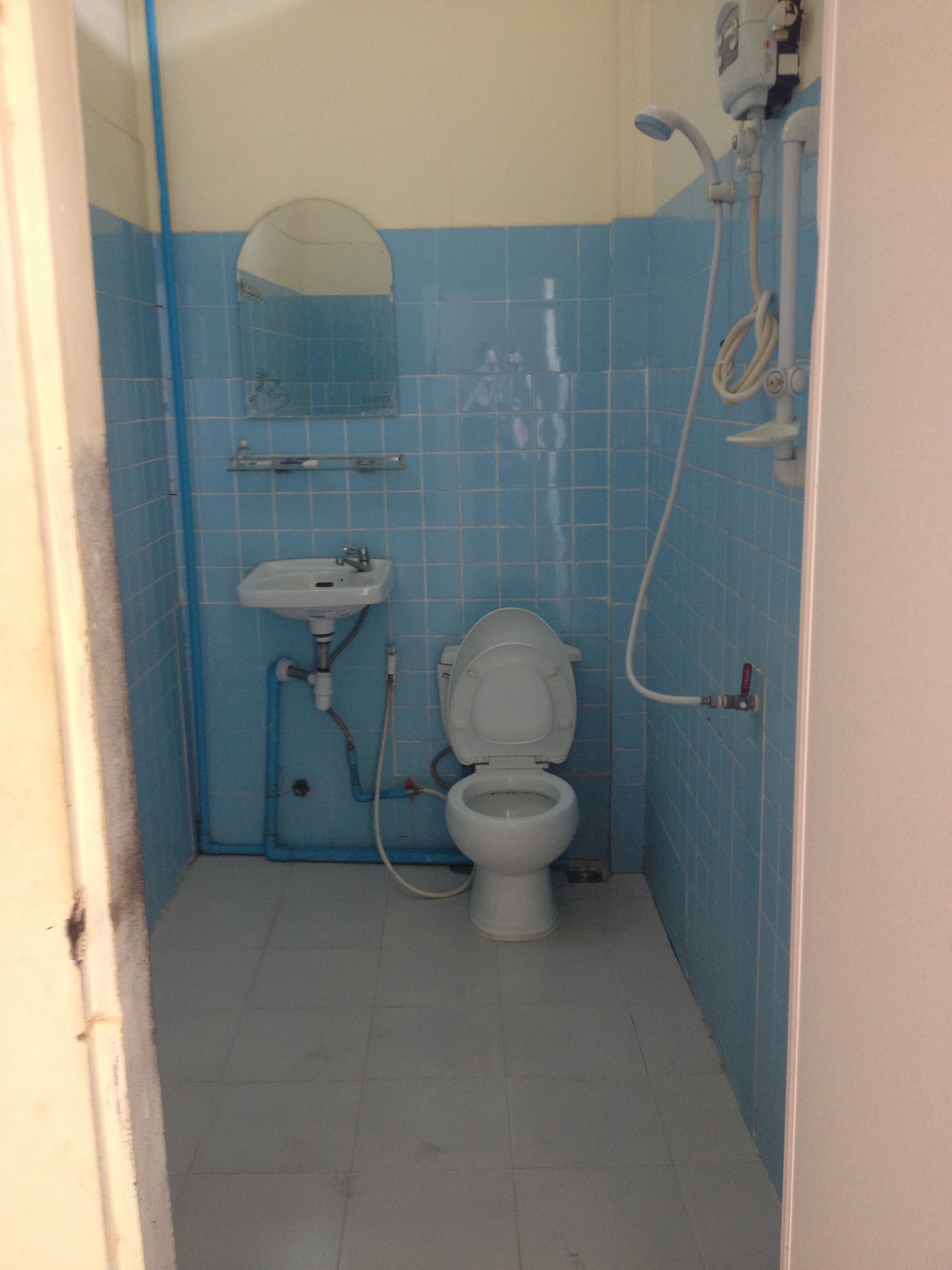 Bathroom isn’t pretty but it works – no tp provided, however. Only 1 outlet for a room of 10.