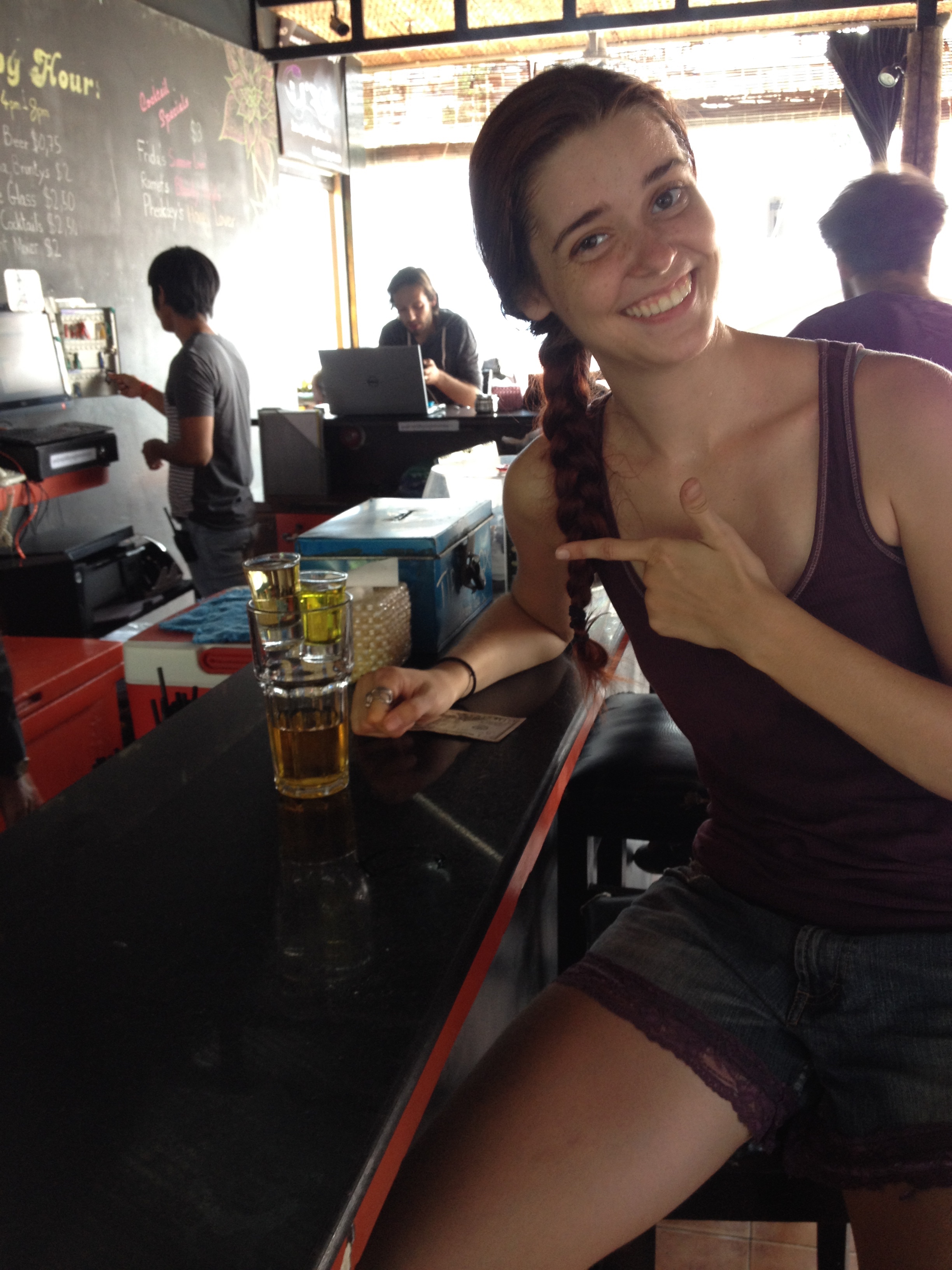 Doing my duty for good ol’ US of A on their Banana Bomb Challenge – shot of tequila followed by a shot of banana liquor dropped in Red Bull.