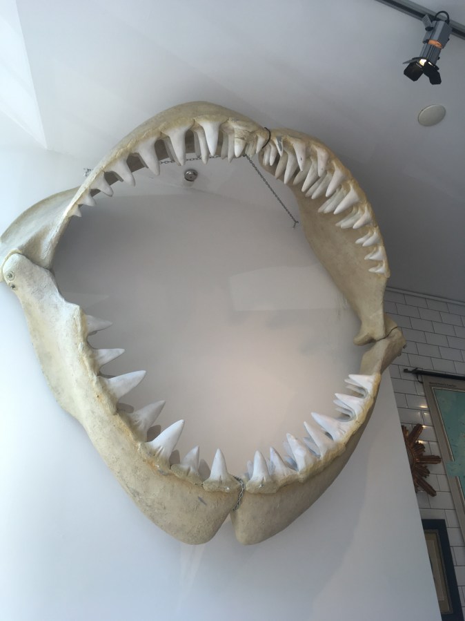Because why NOT have a Giant Megalodon reproduction hanging on your cafe wall?